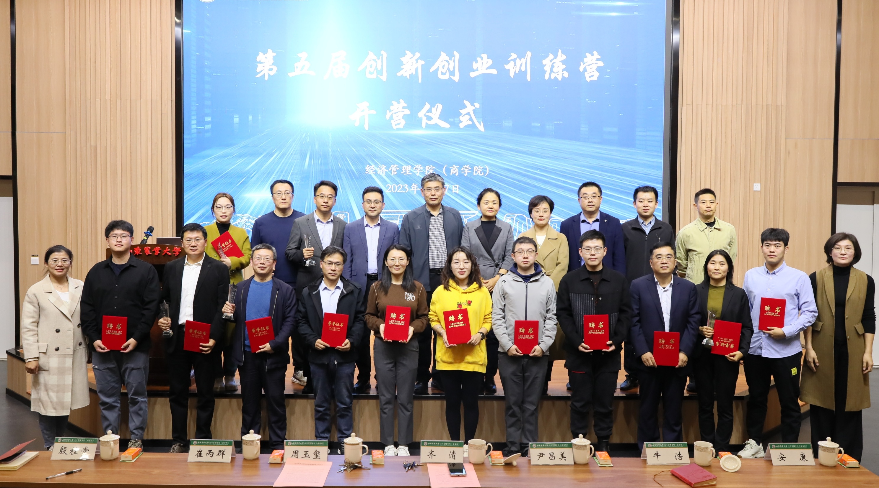 开营仪式上,学院党委书记齐清为新一届学院创新创业导师团导师代表颁发聘书,院长周玉玺整体介绍了学院的创新创业工作,他表示,未来学院将继续加大在创新创业方面的投入,不断完善学院大学生创新创业生态系统。现场,还对过去一年在双创方面取得优异成绩的指导老师和学生进行了表彰。